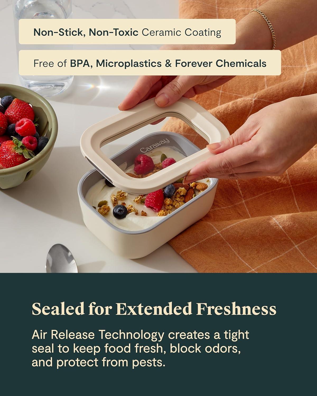 KEEP YOUR FOOD FRESH: Look forward to leftovers with Caraway’s easy-to-store, non-toxic food storage containers. These 4.4 cup glass containers were designed to be displayed and keeps your food fresh & organized.