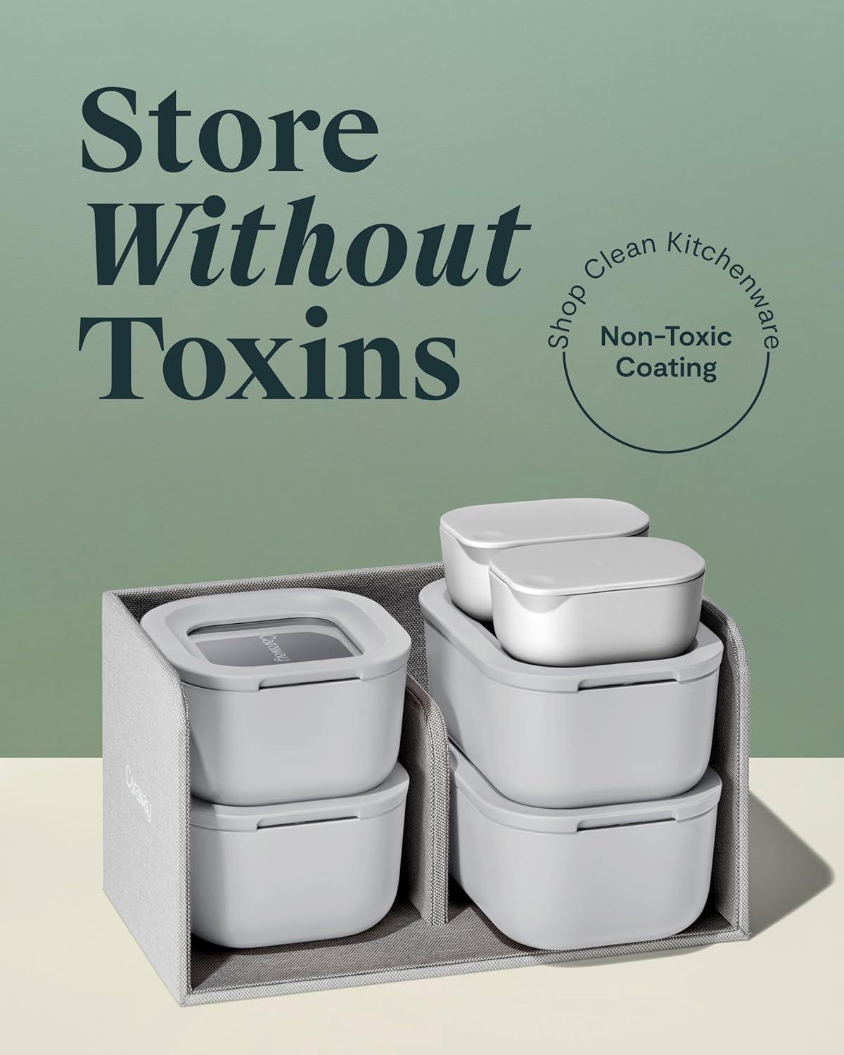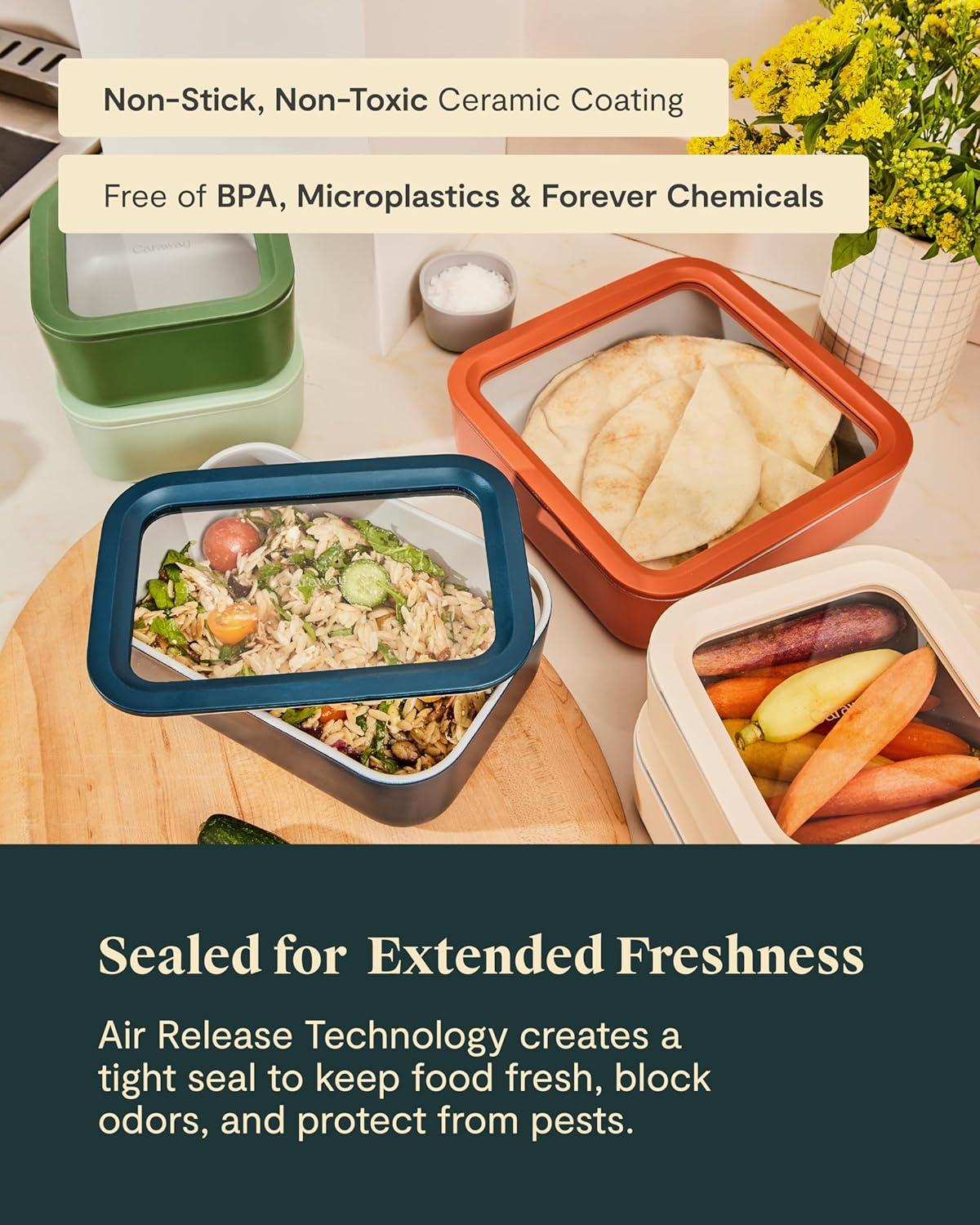 BEAUTIFULLY DESIGNED: The cleanest, best-looking approach to storing your food. Our glass container features a clear glass lid for easy viewing Each container comes in modern colors that will match with your entire Caraway collection.