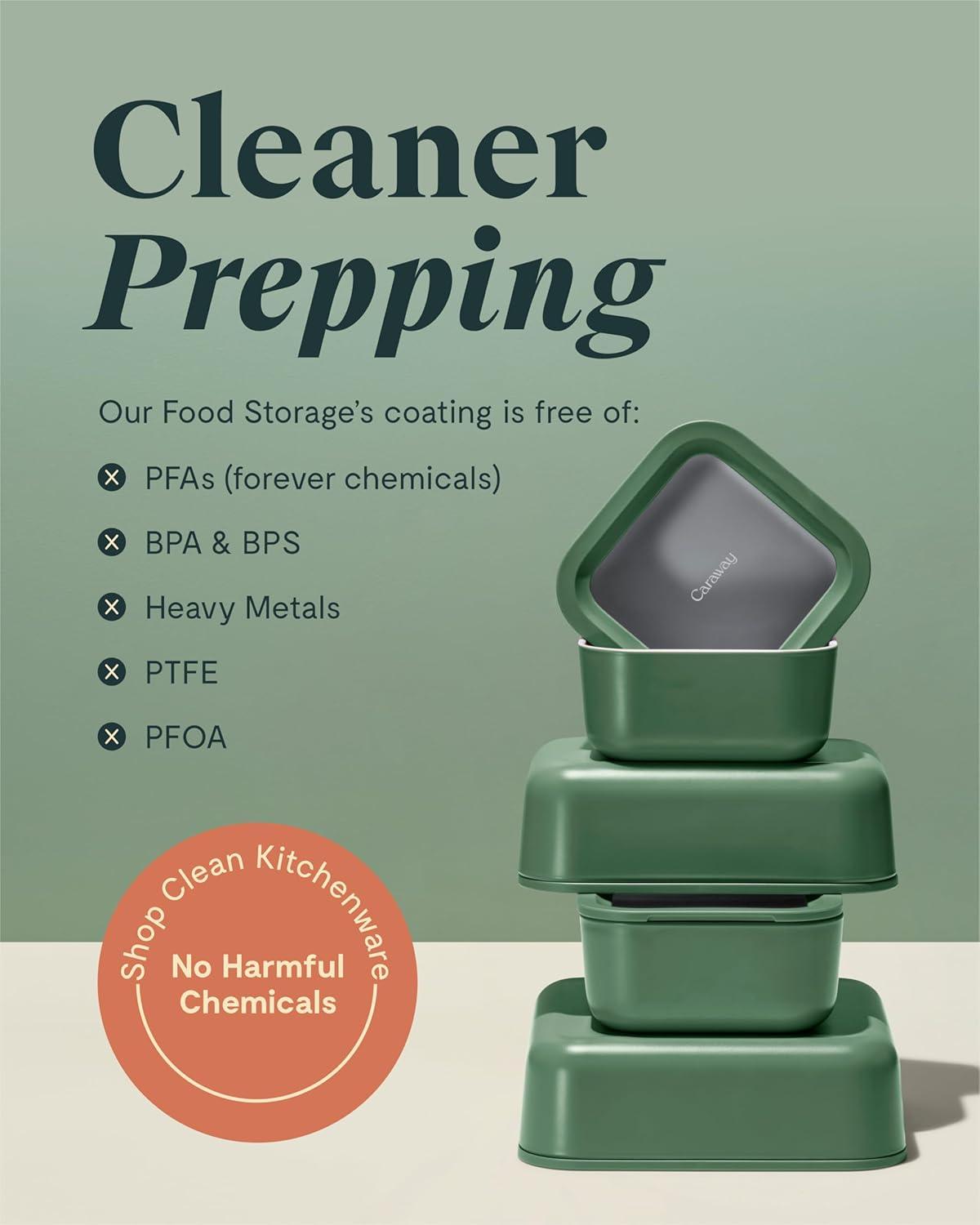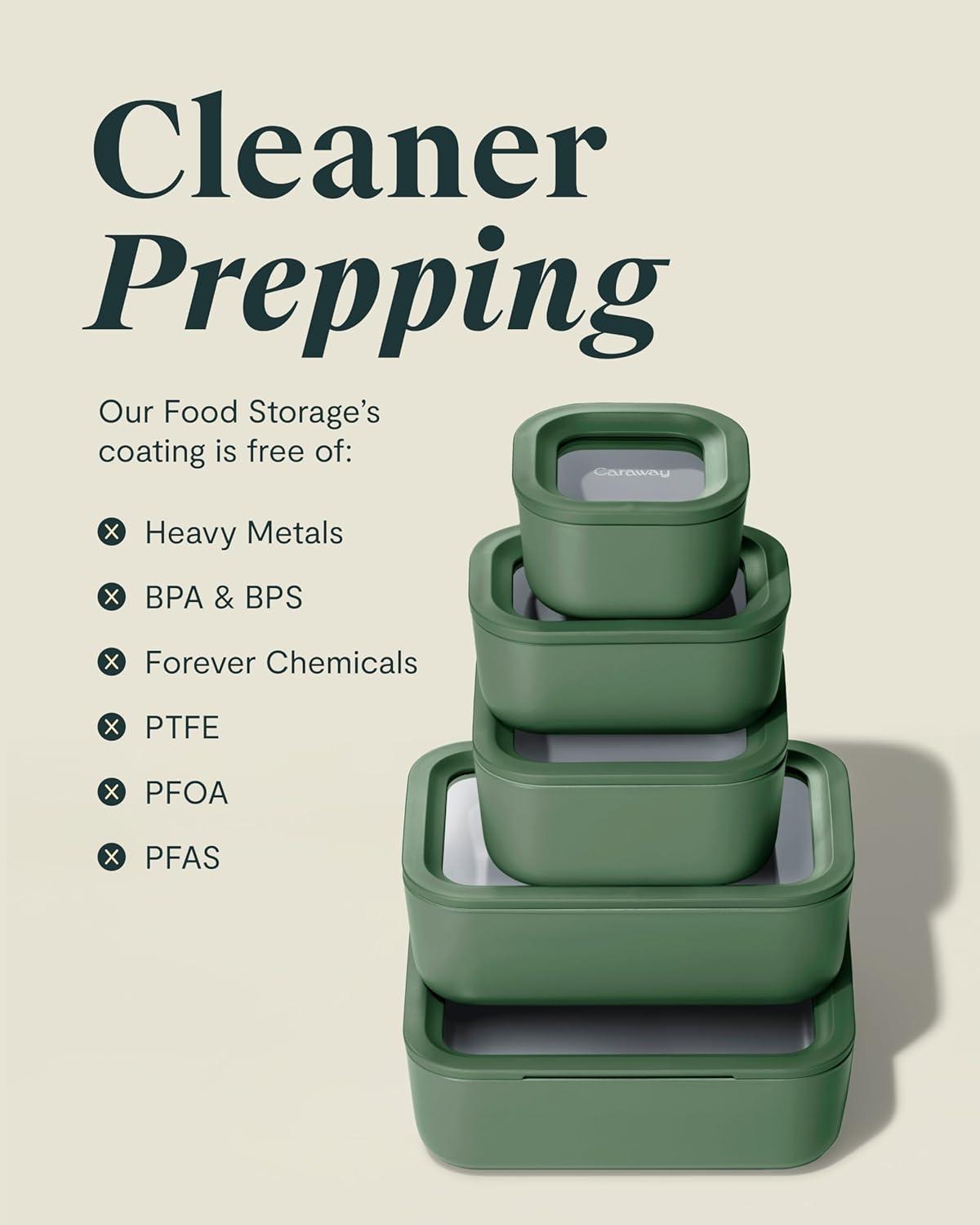 FOOD STORAGE TRIO: Look forward to leftovers with Caraway’s easy-to-store, non-toxic food storage containers. This set includes the Small, Medium, and Large container all featuring non-toxic, non-stick, ceramic-coated glass, this durable container makes prepping, storing, and serving easier than ever.