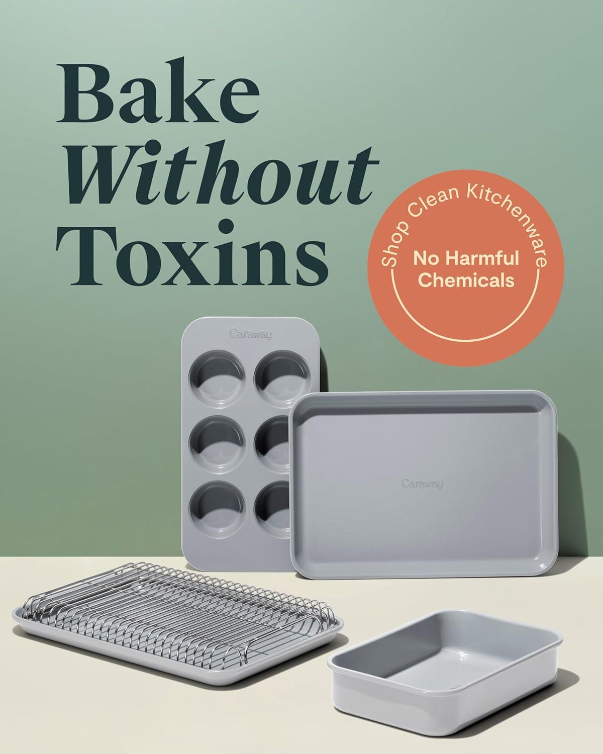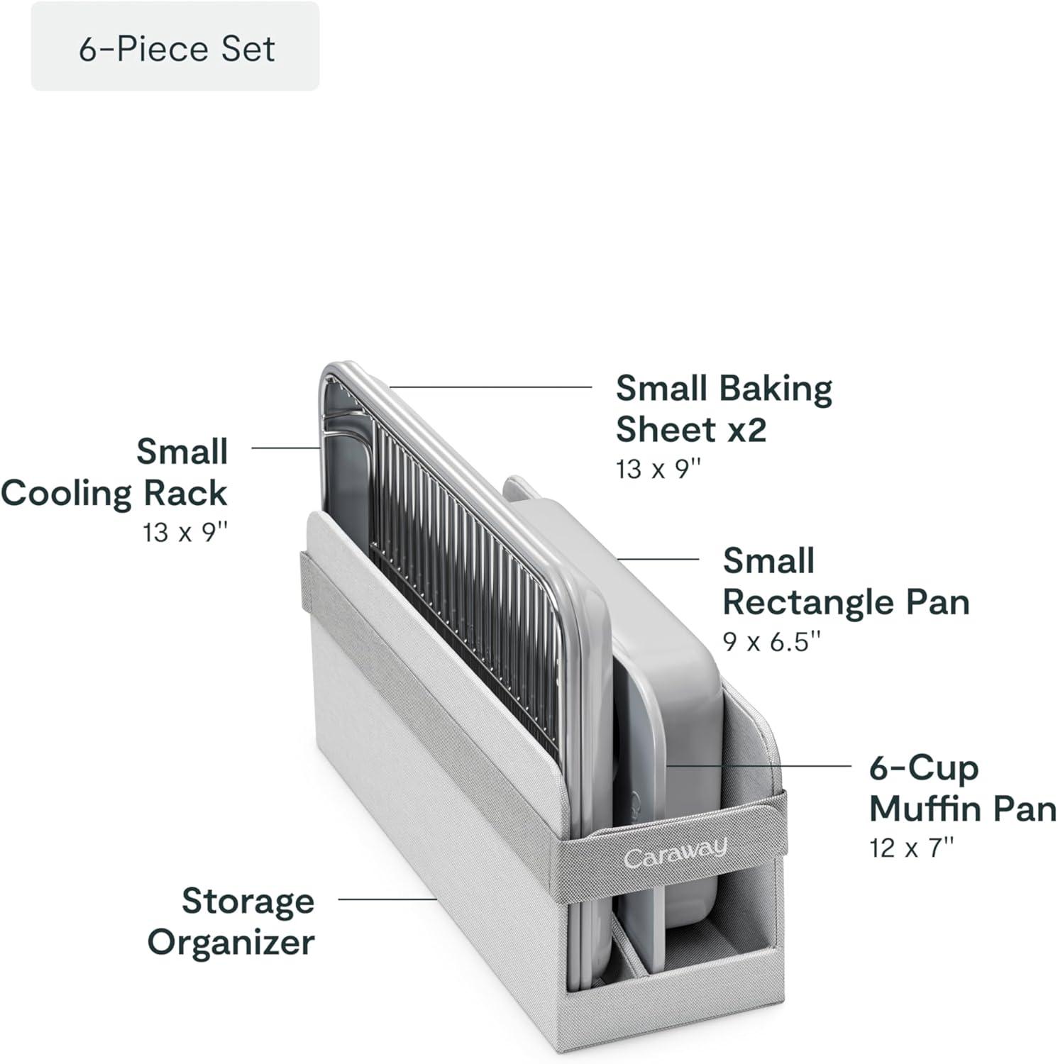Caraway Mini Bakeware Set – Naturally Non-Stick, Non-Toxic Ceramic Coating – Compact Baking Pans Set for Small Kitchens & Ovens – Includes Baking Sheets, Muffin Pan, Cooling Rack & Storage – Cream(Gray)