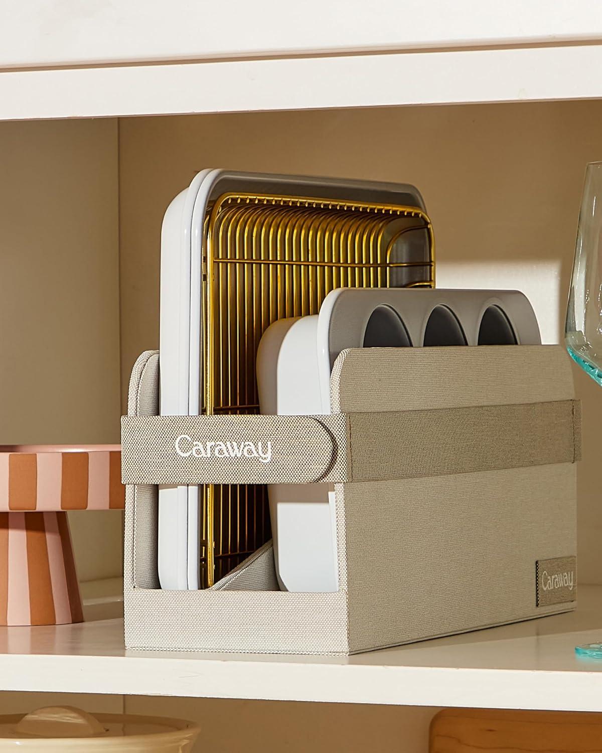 imageCaraway Mini Bakeware Set  Naturally NonStick NonToxic Ceramic Coating  Compact Baking Pans Set for Small Kitchens ampamp Ovens  Includes Baking Sheets Muffin Pan Cooling Rack ampamp Storage  CreamGray