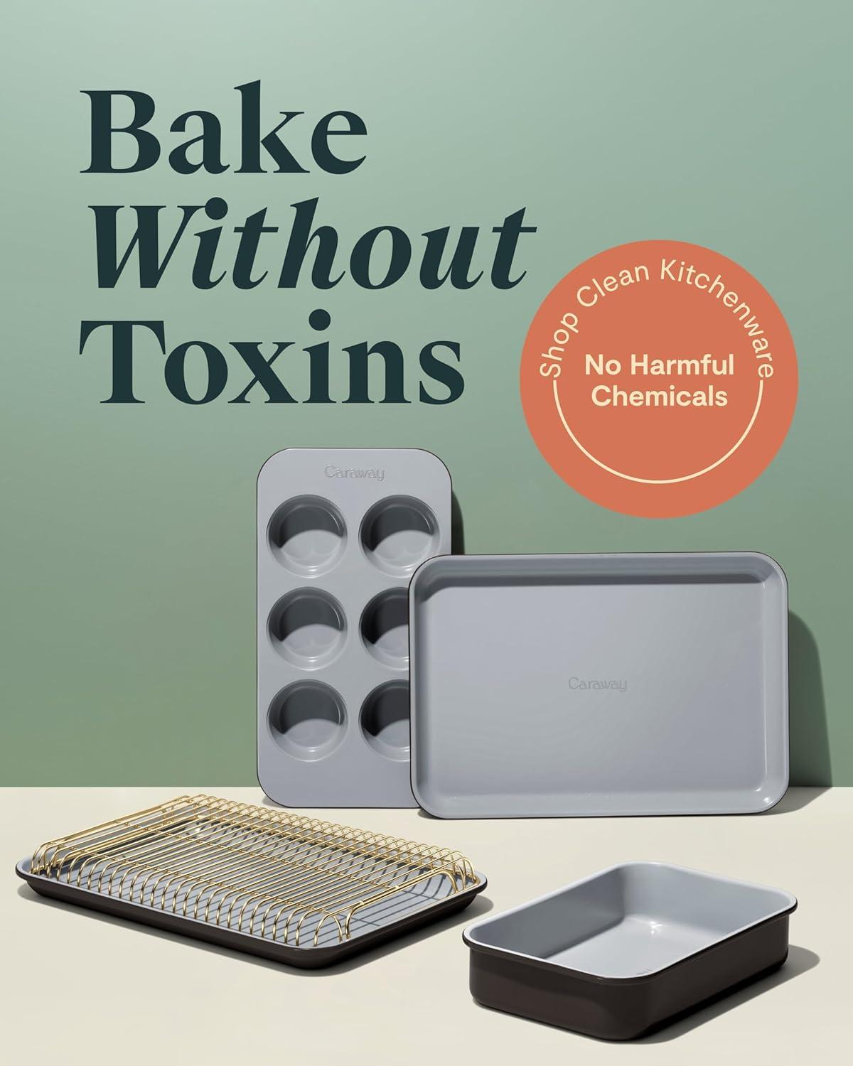 100% NON-TOXIC COATING: Bake with confidence using our non-toxic bakeware, free from PFAS, PFOA, PTFE, lead, and other harmful chemicals. Our ceramic bakeware set ensures safe, worry-free cooking.