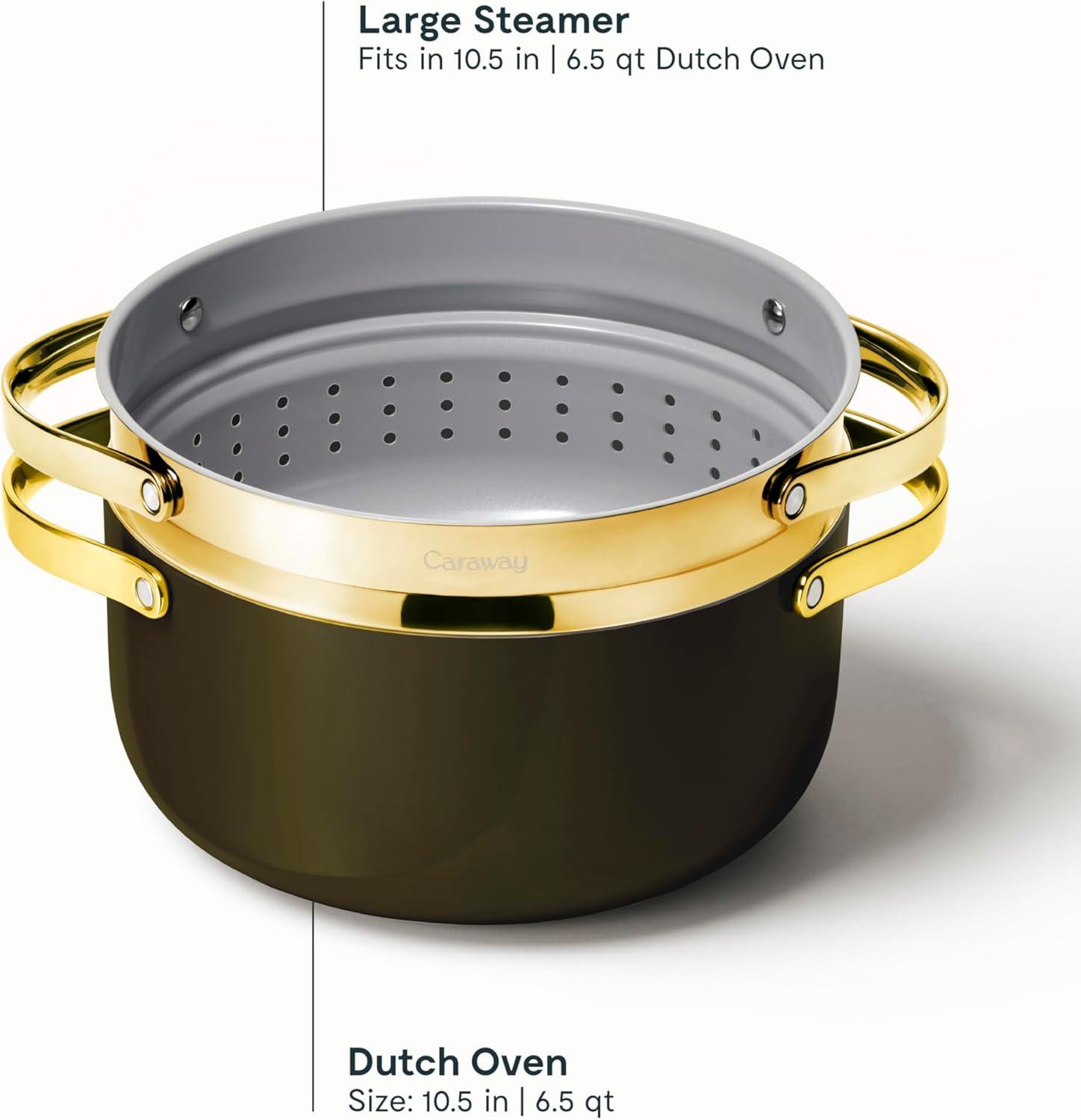 Caraway Nonstick Ceramic Dutch Oven Pot with Lid & Steamer (6.5 qt, 10.5″) – Non Toxic, PTFE & PFOA Free – Oven Safe & Compatible with All Stovetops (Gas, Electric & Induction) – White(Black)