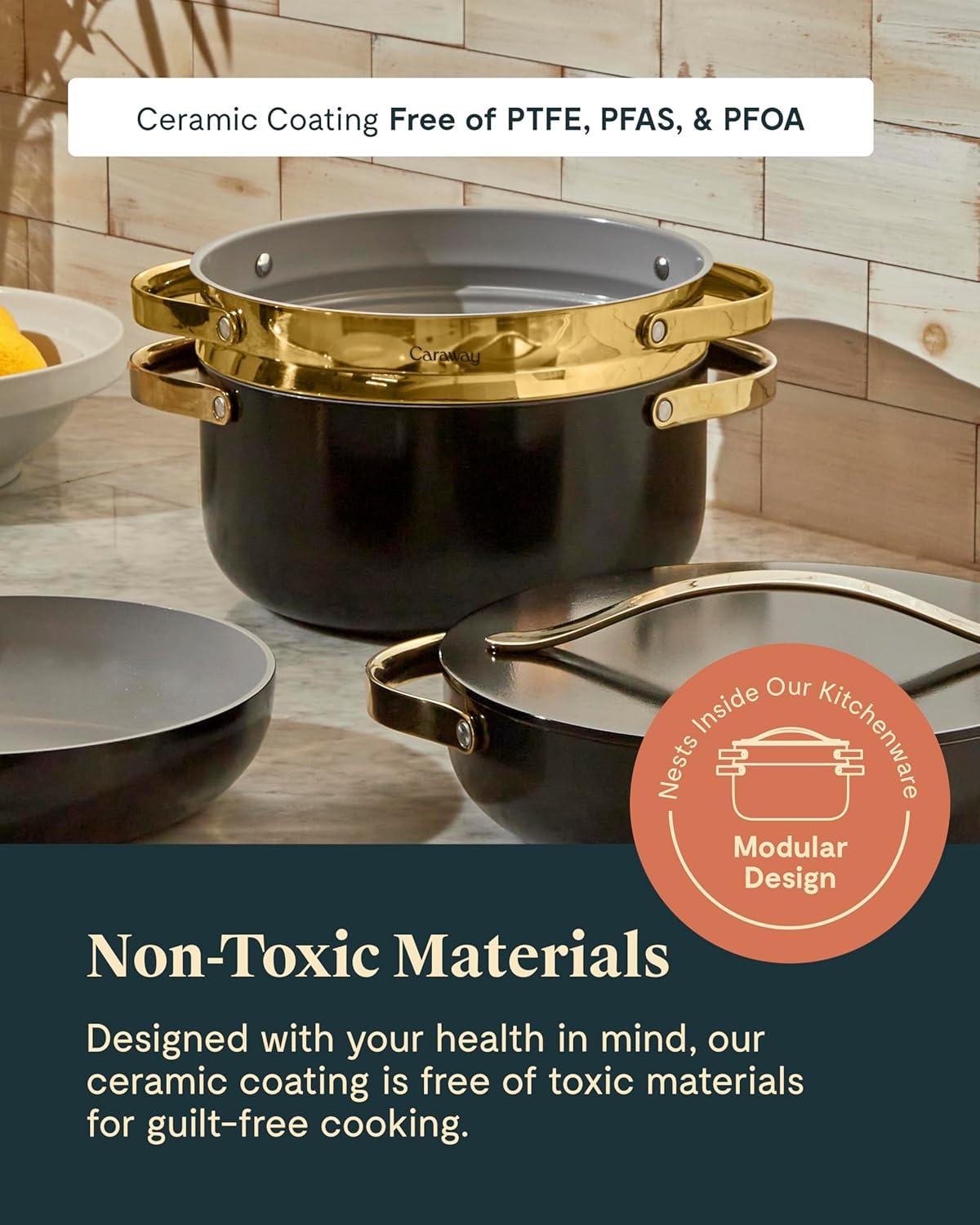 NON-TOXIC COATING: All Caraway pot and pan products are free of PTFE, PFOA, PFAS, lead, cadmium and other toxic materials that can leach into your food, making them safe for you, your family and the environment.