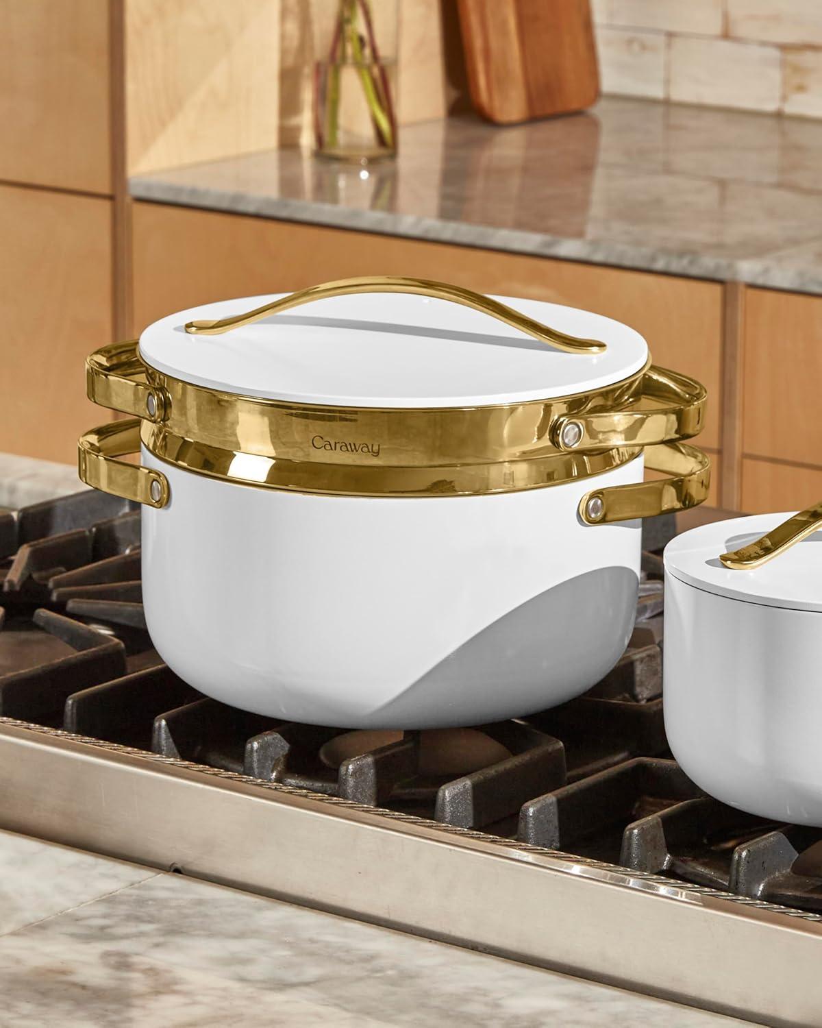Caraway Nonstick Ceramic Dutch Oven Pot with Lid & Steamer (6.5 qt, 10.5″) – Non Toxic, PTFE & PFOA Free – Oven Safe & Compatible with All Stovetops (Gas, Electric & Induction) – White(Cream)