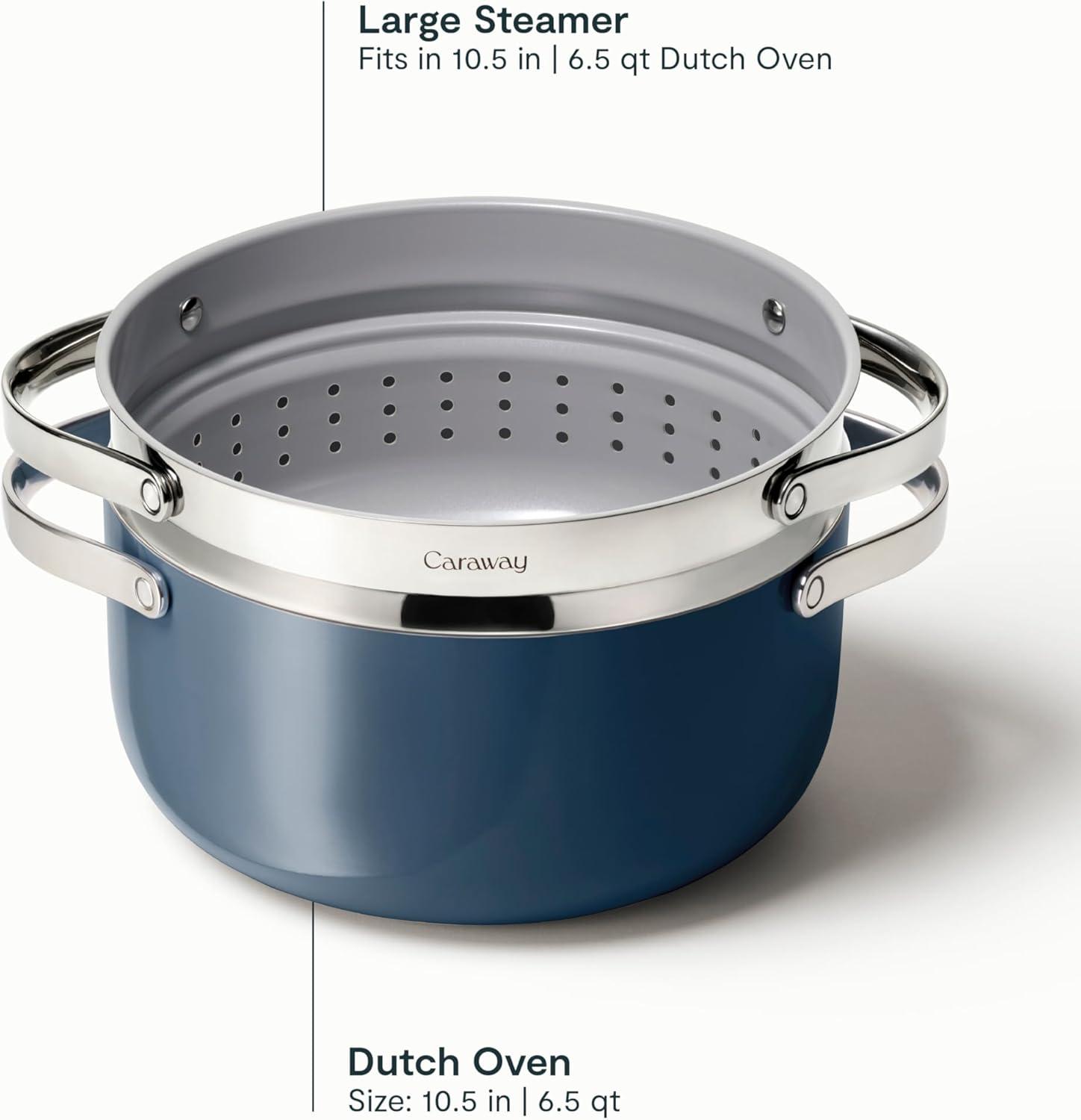 Caraway Nonstick Ceramic Dutch Oven Pot with Lid & Steamer (6.5 qt, 10.5″) – Non Toxic, PTFE & PFOA Free – Oven Safe & Compatible with All Stovetops (Gas, Electric & Induction) – White(Navy)