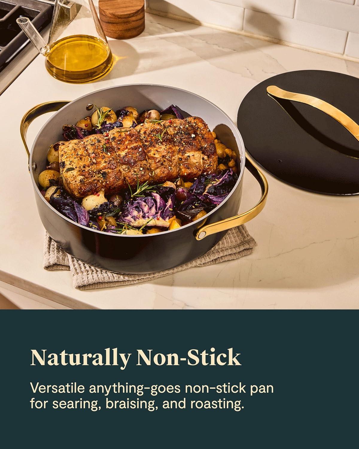 NON-TOXIC CERAMIC COATING: Cook with confidence knowing our Rondeau saute pan is free from forever chemicals and other harmful materials. Our signature ceramic coating ensures your food remains safe and delicious.
