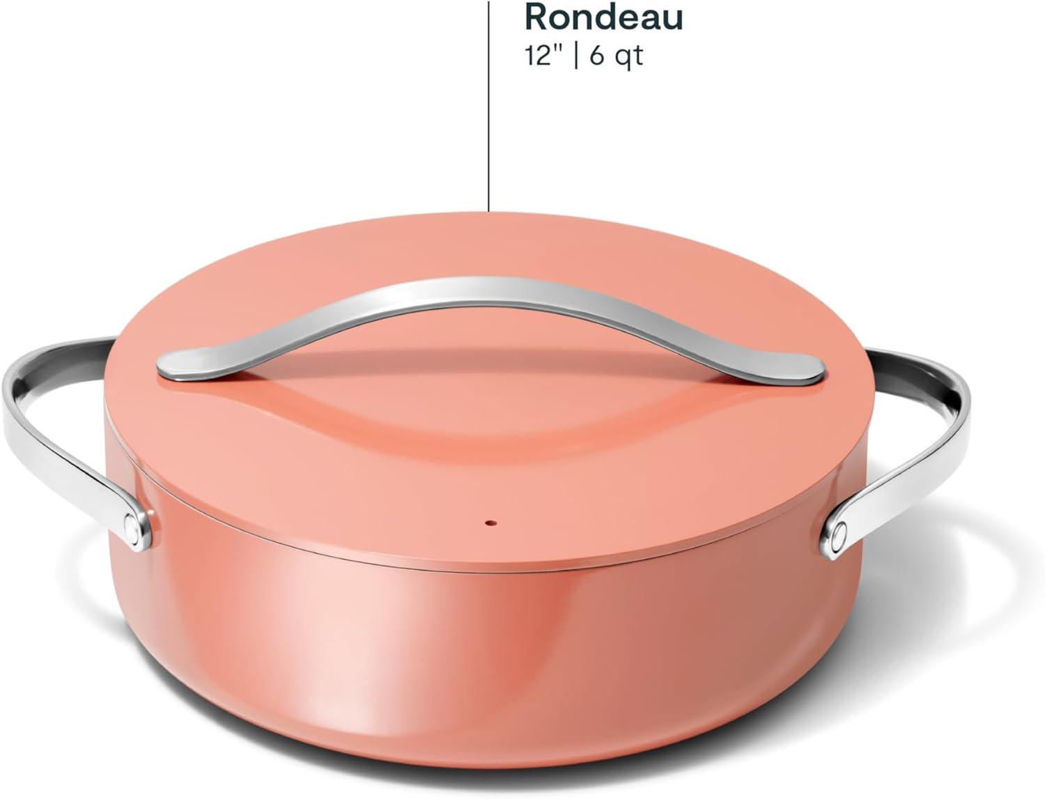 Caraway Rondeau – 6 Qt Non-Stick Pan with Lid – Free From Forever Chemicals – Perfect for Searing, Braising, & Roasting – Cream(Perracotta)